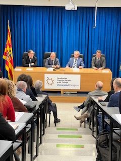 El acto institucional, presidido por el vicerrector de Política Académica de la Universidad de Zaragoza, D. Luis Morellón Alquezar, y conducido por nuestro decano D. José Alberto Nicolás Bernad, contó con la presencia del presidente del Tribunal Superior de Justicia de Aragón, D. Juan José Carbonero Redondo, y del director general de Trabajo del Gobierno de Aragón - Government of Aragon, D. Jesús Divassón Mendívil, junto a numerosas autoridades académicas e institucionales.